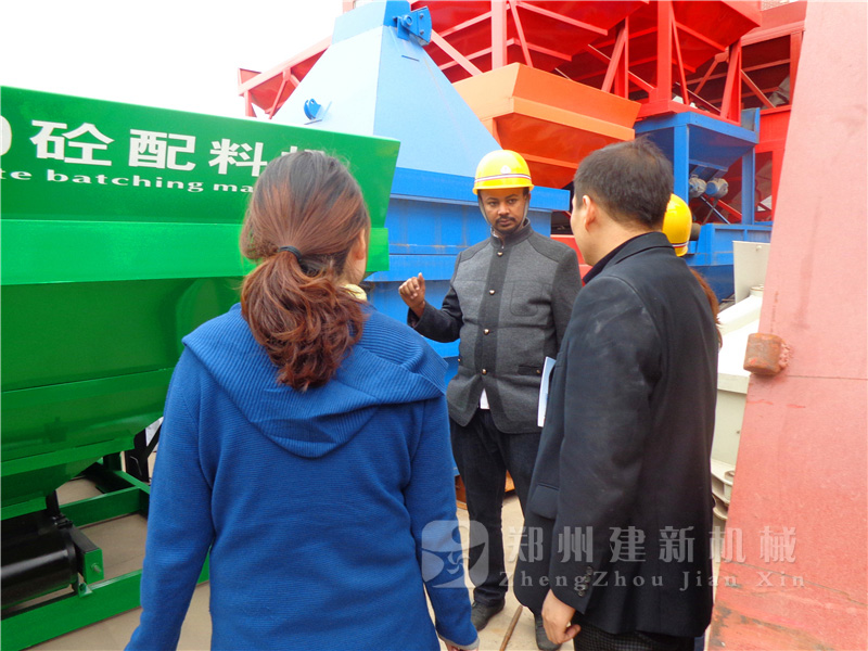 一排排整齊的配料機、攪拌機,展示著鄭州建新公司雄厚的實力,也讓來自埃塞俄比亞的客戶真真切切的感受到了建新混凝土攪拌站設備的技術、工藝,無微不至的服務,更是堅定了客戶與建新公司合作的信念。
