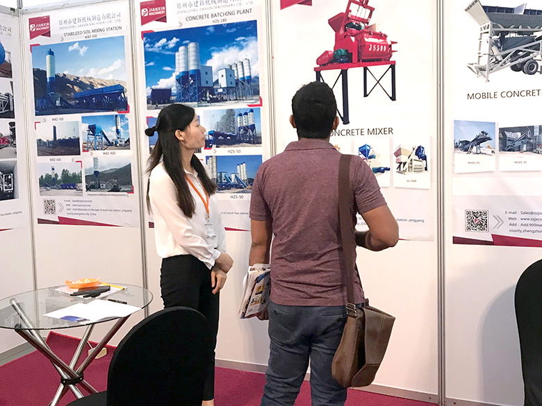 混凝土攪拌站、WBC系列穩(wěn)定土拌合站等產(chǎn)品吸引了絡(luò)繹不絕的觀展者駐足洽談。接待人員不失時(shí)機(jī)地向來觀展的客戶介紹建新機(jī)械的技術(shù)優(yōu)勢(shì)、產(chǎn)品特點(diǎn)、售后服務(wù)及銷售代理政策,其熱情的講解受到了廣大斯里蘭卡客戶和當(dāng)?shù)毓こ虣C(jī)械人士的關(guān)注,部分客戶當(dāng)場(chǎng)展開了詳細(xì)的商談。